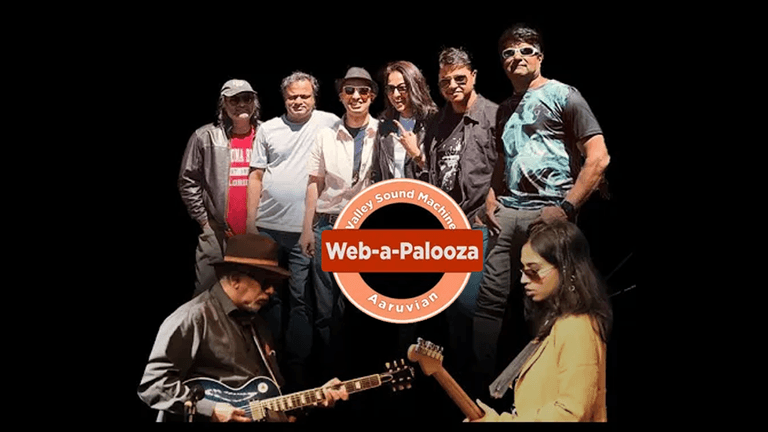 Welcome to Web-a-Palooza: A Virtual Concert Experience like no other! Get ready to rock as we bring you two powerhouse bands from the world's leading tech hubs: Valley Sound Machine from America's Silicon Valley, San Francisco Bay Area, and Aaruvian from India's Silicon Valley, Bangalore.